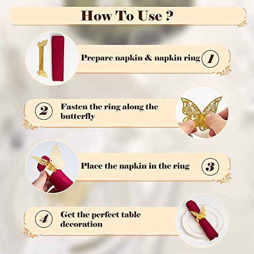 - 【Reusable Napkin Ring Set of 100】ESLOYSUN butterflynapkin ring set of 100 can be reused. The napkin ring set of 100 is made of reusable paper, which has the characteristics of sustainable use and meets your needs for banquet table decor and environmental protection.
