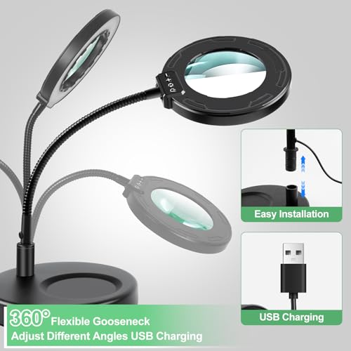 - 【Adjustable Gooseneck Magnifier】The flexible gooseneck can be adjusted to the position you want. You can easily bend the gooseneck to create more angles of use. It only takes 5 seconds to fix the magnifier, free your hands and enjoy reading newspapers, knitting, repairing, fixing jewellery and other arts and hobbies.