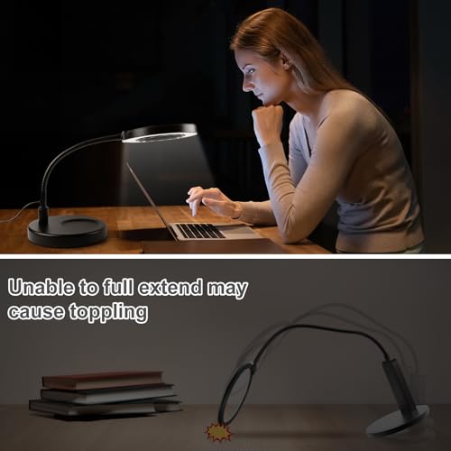 - 【Upgraded Heavy-duty Base】The base is weighted, which stays well in place and doesn't tip at all. The flexible gooseneck can be extended freely with plenty of distance for use. The base can be used as a desk lamp. A desk, workbench, shelf, or table all can be easily installed without any tools.