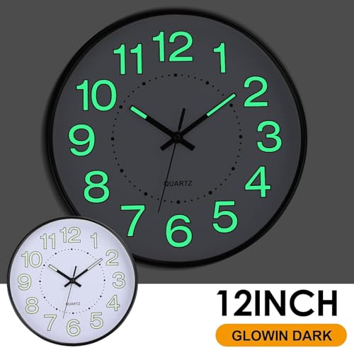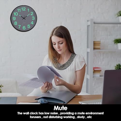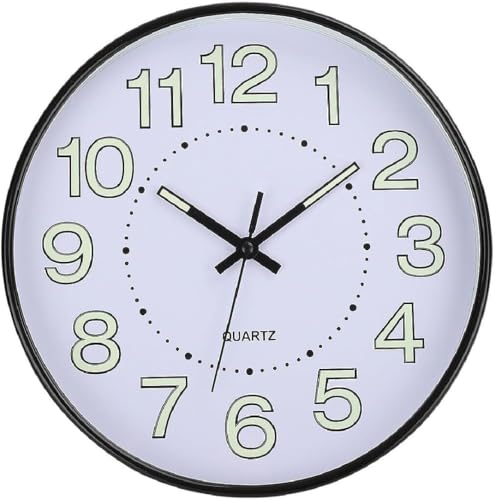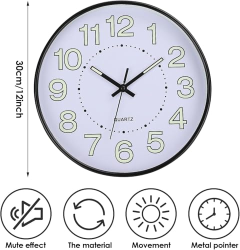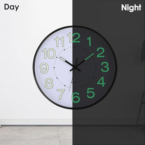 - 🌙 Glow-in-the-Dark Visibility: Our luminous wall clock features bright, easy-to-read numbers that glow in the dark, allowing you to check the time effortlessly throughout the night without turning on lights. The long-lasting phosphorescent coating ensures visibility for hours after lights out, making it perfect for bedrooms, nurseries, and hallways.