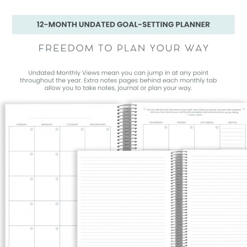 - 📝 FLEXIBILITY IN PLANNING: Undated Monthly Views mean you can jump in at any point throughout the year. Extra notes pages behind each monthly tab allow you to take notes, journal or plan your way.