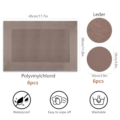 - 【PVC+Leather】Table mats are made of environmentally friendly PVC and coasters are made of leather which is durable and will not warp. The products protect the table from scratches and stains and prolong the life of the table.