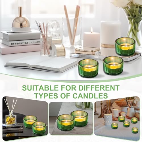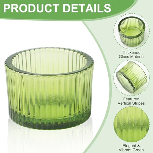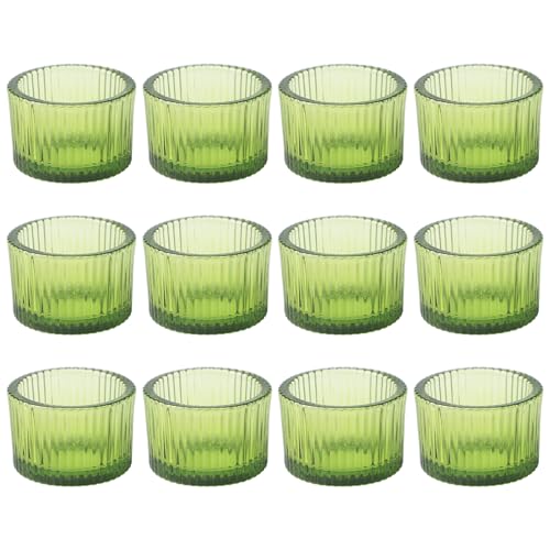 - 【High Quality Glass】You will receive 12pcs Green Glass Candle Holders made of glass, and the transparency makes candlelight brighter and uniform. The thickened glass ensures that Ribbed Tealight Holder and can be used multiple times.