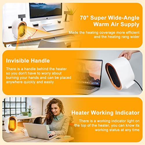- 【Three Second Heating】Portable mini heater is designed with intelligent constant temperature. Energy saving heaters for home use ceramic heating element, PTC heating sheet and aluminum sheet, three seconds of heating, heat evenly distributed, fast heating speed to help the room quickly warm up, enjoy the warm winter.
