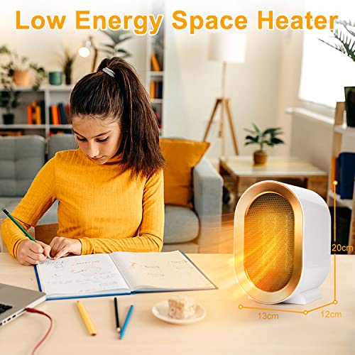 - 【Two Modes】The office desktop heater has two settings, the back adjustment button has low heat 800W and high heat 1200W. Portable heaters for home low energy will reduce your electricity bill while heating. The high heat setting releases a large amount of heat to help warm the whole room quickly. You can choose the correct mode for the temperature of the room to help protect you from the cold weather.