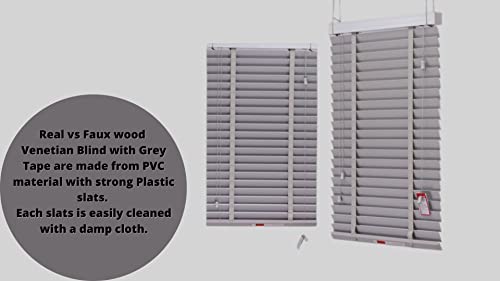 - Faux Wood Venetian Blinds (135cm Width x 150cm Length + 7cm Depth, Grey/Silver with Tape Design). Stylish and durable with 50mm slats for light control and privacy. Suitable for inside mounts with a window depth of approximately 7cm.