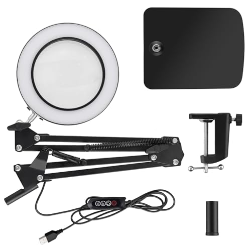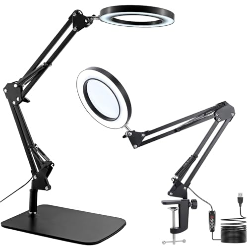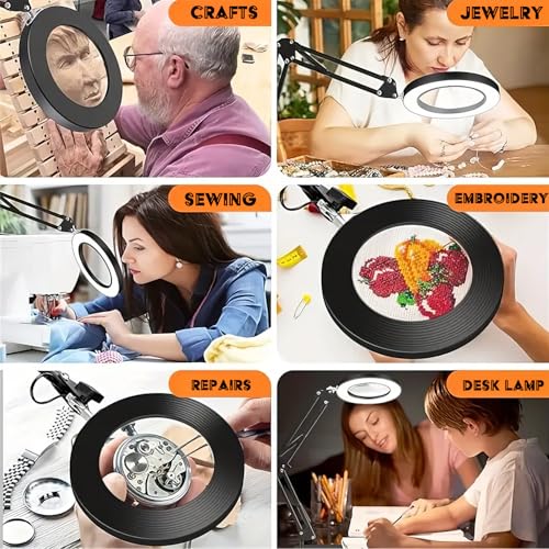 - Hands-Free Swing Arm Magnifying Glass: Our magnifier lamp features two interconnected swing arms and four robust support springs, securely locking the arms and lens in place with an adjustable knob—allowing you to work hands-free. Say goodbye to the discomfort of holding a heavy magnifier! Ideal for beauticians, artists, engineers, repair technicians, coin collectors, watchmakers, architects, and more, this magnifier lamp enhances precision and comfort in every task
