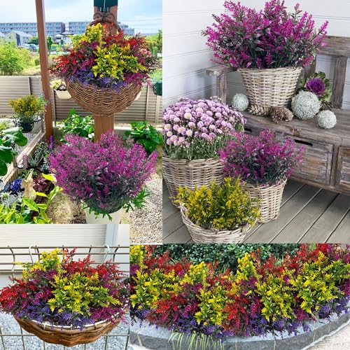 - 【High Quality Materials】Faux uv-resisitant flowers use high-quality sunscreen plastic materials,Such Plants Bouquets and Fake Flowers do not worry about sun exposure or rain, and can display their beauty anytime,Save you more time and money