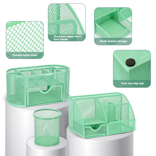 - PREMIUM CRAFTSMANSHIP: Desktop organiser with powder coating finish and electroplating technology, wire mesh and wire craftsmanship, hard and not easy to deform, smooth surface, elegant and beautiful, very suitable for placing desktop accessories, the bottom of the organiser is equipped with non-slip spacers, will not cause damage to the desktop