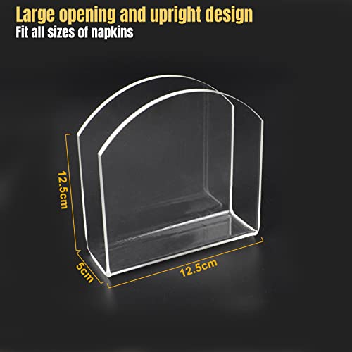 - THICKEN STURDY NAPKIN HOLDER: Not made of thin plastic, but thick high-quality acrylic. Crystal clear and bright, with simple design, the napkin holders for tables can be matched with any style of theme decoration to make your dining table more elegant and stylish.