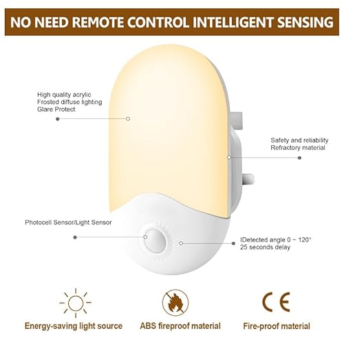 - 【Plug-In Night Light】 Plug the LED night light directly into any standard UK electrical socket and enjoy instant illumination in dark.Easy to install, it is an indispensable night light for every family.