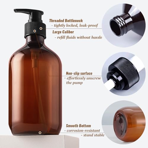 ![<ul><li>[Large Capacity] Our 500ml (17oz) Pump Bottle Dispenser is crafted from premium PET material, ensuring it is safe and eco-friendly. This corrosion-resistant, non-toxic, and odor-free bottle offers a durable solution for your daily needs, making it perfect for home or travel use. It can easily be refilled after use for continued convenience.</li><li>[Leak-Proof Design] Equipped with a secure threaded bottleneck, our pump bottle prevents any liquid leakage, providing peace of mind during storage and transport. The wide opening allows for effortless refilling without any spills or mess.</li><li>[Anti-Slip Grip] Designed with an anti-slip textured exterior, the pump head allows for a secure grip even with slippery hands. Easily unscrew the pump head without any hassle, ensuring a smooth user experience every time.</li><li>[Relockable Feature] Traveling with your shampoo and conditioner has never been easier! Our pump head can be quickly locked by pressing and turning it clockwise, keeping it securely in place and preventing any accidental leaks in your luggage.</li><li>[Versatile and Practical] This plastic soap dispenser is a fantastic alternative to bulky glass bottles. Suitable for various fluids including shampoo, body wash, dish soap, hand soap, cleansing milk, body lotion, mouthwash, and massage oils, our dispenser is perfect for your bathroom, kitchen, laundry room, or on-the-go needs.</li></ul> 2 Packs Plastic Pump Bottle Dispenser 500ml(17oz), Refillable Soap Dispensers for Bathroom, Kitchen, Amber Shampoo Dispenser Shower Gel Dispenser, Empty Shampoo Bottles with Pump - Cosy Home Interiors](https://www.cosyhomeinteriors.com/wp-content/themes/mediacenter/assets/images/blank.gif)
