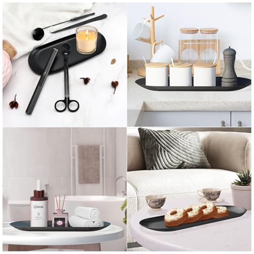 - 【Widely Used】: The black oval tray is easy to carry items and saves a lot of space on your desktop. Prevent items from being messy and can be used for display and storage. Place it in any corner of the home, such as the kitchen, bathroom, dining table, living room, coffee table, etc., to provide you with beauty and convenience.
