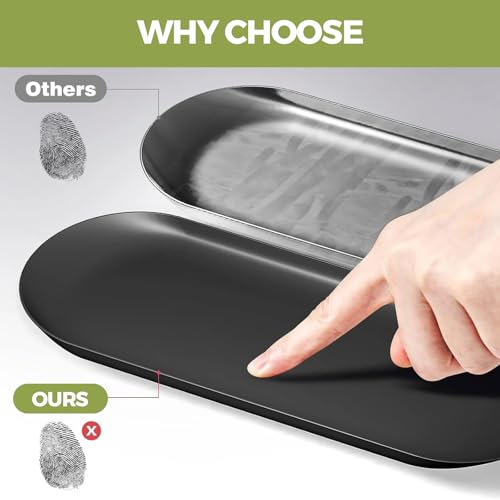 - 【Metal Material】: The small tray is made of high-quality stainless steel, which has been treated with a matte process and has a smooth surface. It is molded in one piece and is more durable than traditional wooden and plastic trays. The rounded corners and side heightening are carefully crafted to prevent leakage while making the tray more beautiful, making it an ideal choice for your long-term use.