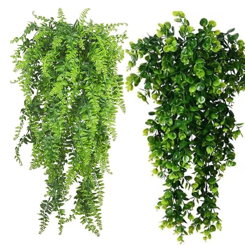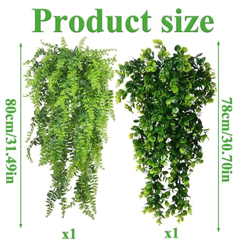 - 【Dimensions】each package contains 1 eucalyptus vine and 1Persian vine 1 of hanging plant(no pot). The total length of each vine is 76cm30 in. The artificial plants indoor design style is modern and fashionable, which is the best decoration for any home, office or shop.