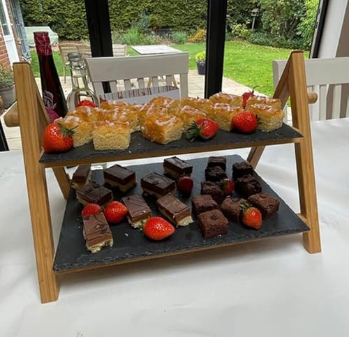 - Bamboo frame and two natural Dark Grey slate serving platters which allow guests to pick and share from a selection of dishes.