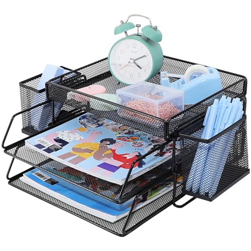 - 【Well Made】Sturdy letter tray with 2 compartments and one extra drawer. Our metal mesh letter tray is strong enough to hold folders and books as well as paper and doesn’t wobble