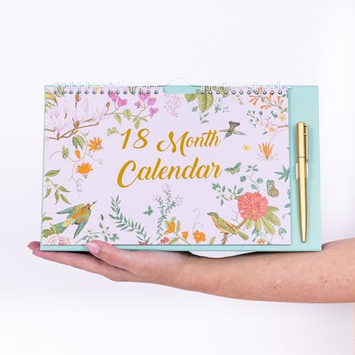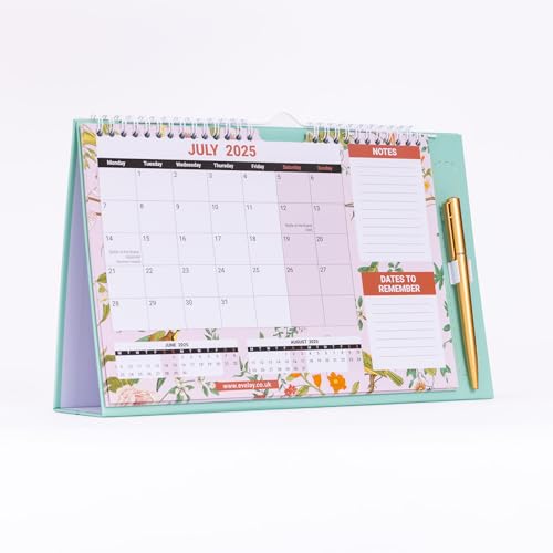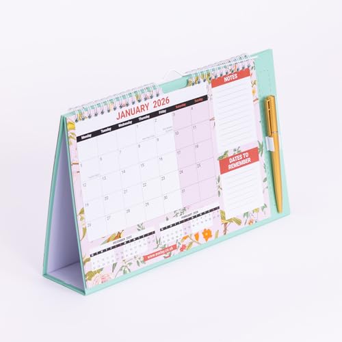 - Desk calendar 2025-2026 spiral bound free standing with pen included