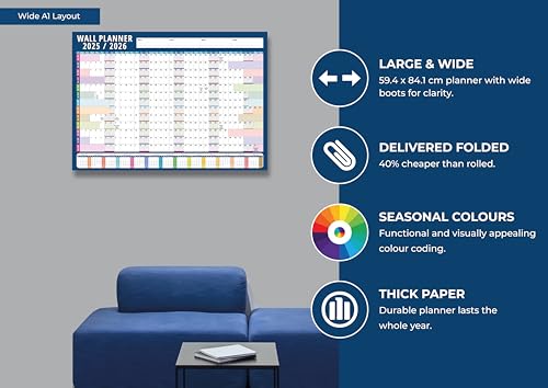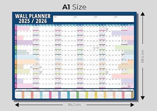 - 🌈 Vibrant Multicolour Design 2025/2026 Wall Planner Has Bright, colour-coded layout makes it easy to differentiate months and stay visually organized.
