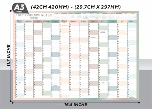 - Package Includes: This Package Provides You Only Pack Of 1 A3 Wall Planner 2025-2026 Yearly Calendar Is Available In 29.7 x 42.0 cm And Multicolor Academic Wall Planner Is Great Quality And Good Value For Money Wall Planner Calendar Is Large Enough To Give You A Clear Overview So You Can't Forget The Special Occasions For The Whole Year Wall Planner Will Come In Foldable