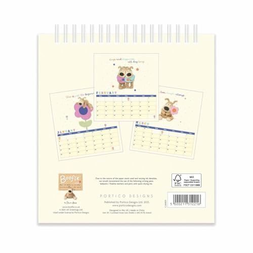 - 2026 Boofle Free-Standing Desk Calendar from Portico Designs Ltd. Compact & Practical – Designed to stand easily on your desk, whether at home or in the office, without taking up too much space.