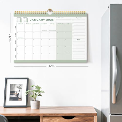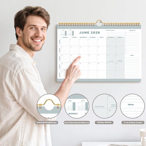 - Unique Features: This monthly calendar is made from sturdy premium paper to prevent ink bleeding and strong twin-wire binding for a smooth flipping experience. The gold spiral and hanger are durable and perfect for hanging