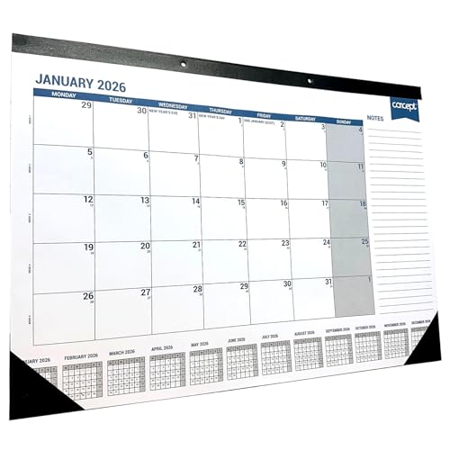 - Monthly view desktop calender for daily planning with convenient notes section