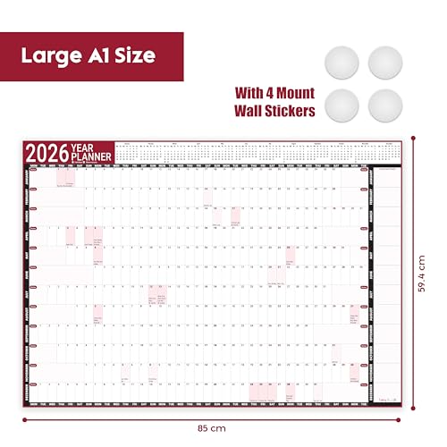 - 🗓️ (IDEAL DIMENSIONS): A1 planner measures 59.4 x 84.1 cm. There is enough space on each date for notetaking. Ideal and useful calendar for your busy days. Perfect for the whole family or a person to see what events are coming up for each month.
