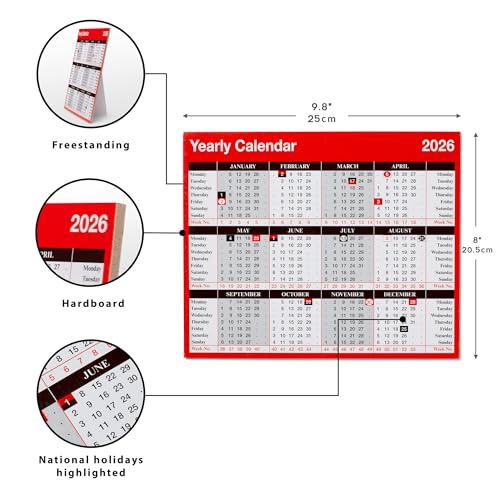 - Freestanding 2026 Calendar – Utilize desk space efficiently with our 2026 hardboard calendar. Its sleek, freestanding design assures long-lasting use and organization in any setting.