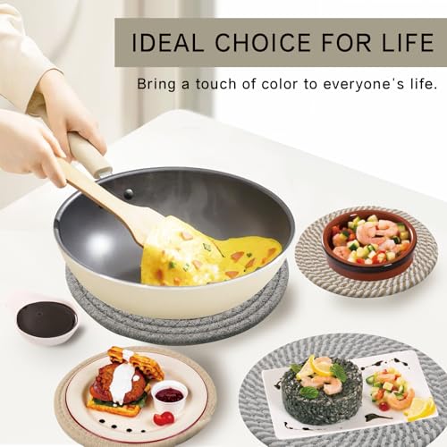 - 【Fine Craftsmanship】: Placemat is carefully woven from thick cotton rope, without any chemical dyeing, non-toxic and odorless, flexible and durable. The spiral weaving texture makes its structure more stable and has excellent thermal insulation, with an effective thermal insulation effect of up to 80˚C.