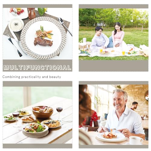 - 【Easy To Clean】: Cleaning these round woven table mats are very easy and simple. You can choose to wash it by hand, soak it first, and then rub it gently, and the stains will fall off easily. You can also choose to machine wash it. The 0.3-inch thick fabric is tear-resistant and not easy to damage.
