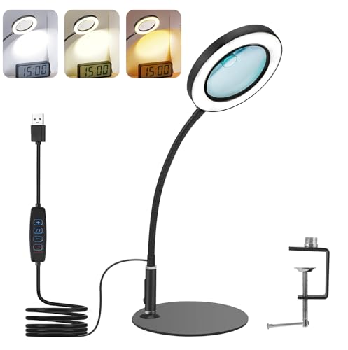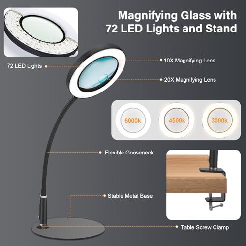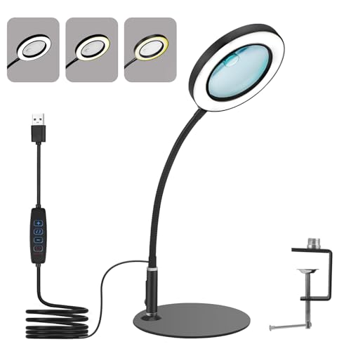 - 【Adjustable LED Light】: Magnifying glass with light is powered by USB, built-in 72 light beads provide high brightness to illuminate the scene, 10 brightness levels of light (0%-100%) to choose from, three colours of light are adjustable