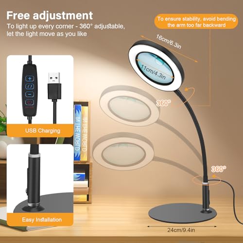 - 【Stable Metal Base】:Magnifying lamp base size: 24*20cm, the stability of the base is enhanced by a larger support area, the heavy base design reduces the risk of tipping due to vibration or impact. It also won't scratch the surface
