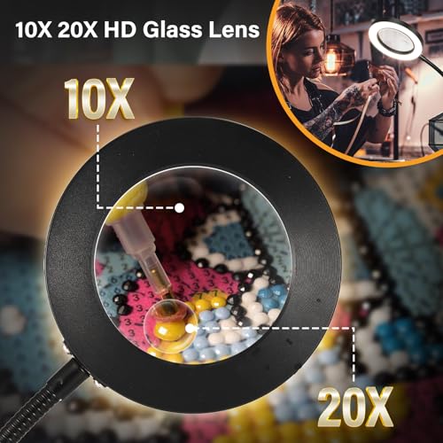 - 【Maximise Precision View】: Magnifying glass with 20X and 10X magnification, the magnifier enhances clarity for close work. It can effectively observe high-precision details and enhance observation efficiency