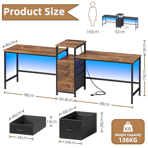 - 🖥️【236cm Extra Long & Two Person Design】 Experience uninterrupted side-by-side working with this 236cm office desk, designed as a spacious double desk for dual monitors, collaborative projects, or family home office setups – ideal as a work desk for home office or studio desk