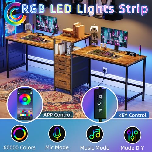 - 🎮【RGB Strips & Charge Station】 Brighten your gaming or work setup with LED lights. Includes a built-in charging station with 4 AC power sockets and 2 USB ports for convenient, cable-free device charging right at your desk table.