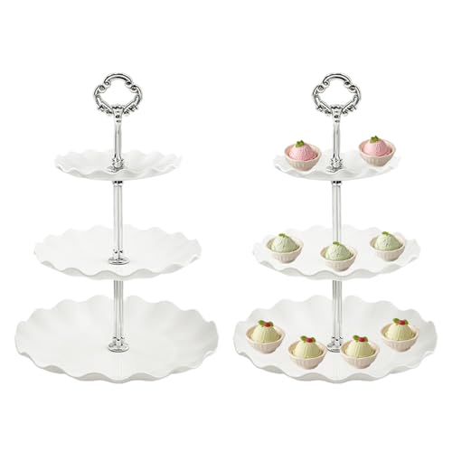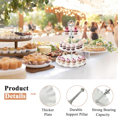 - Elegant and classy style: Impress your guests with this stunning classic cupcake stand pack. Three tier white plates, matching up with the white struts, these cupcake stands will definitely go with any home style and party theme.