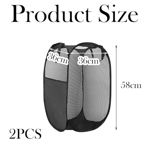 - Package Includes: You will receive 2 pieces of collapsible laundry baskets foldable in black, which measures 36*36*58 CM, and 75L. Pop up washing basket has enough capacity to hold a large number of items of clothing and other small items.