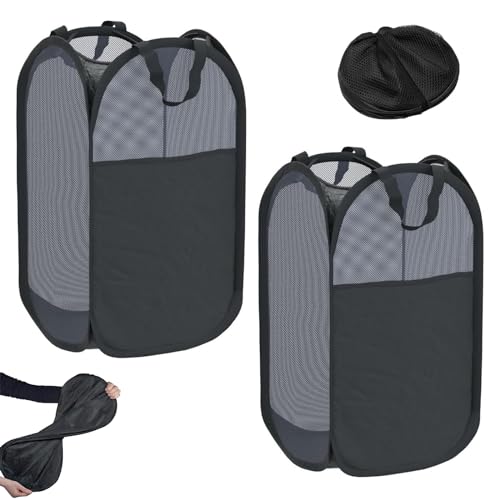 - Exquisite Design: Folding laundry basket black mesh the breathable nylon mesh looks good, allows maximum air circulation and minimises odour to keep clothes fresh.