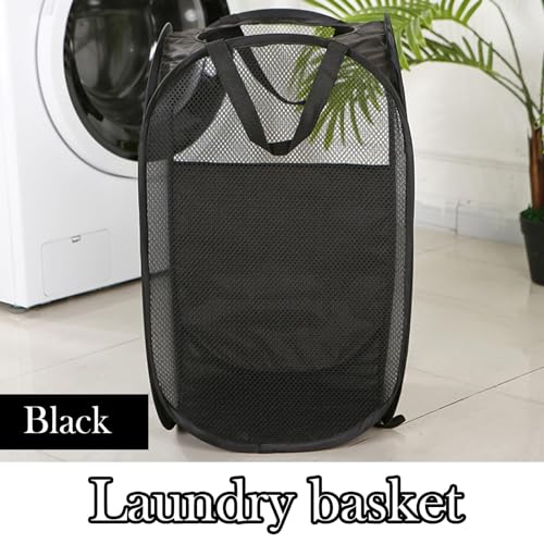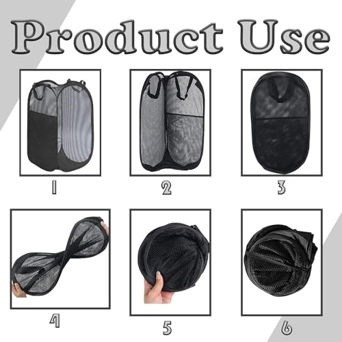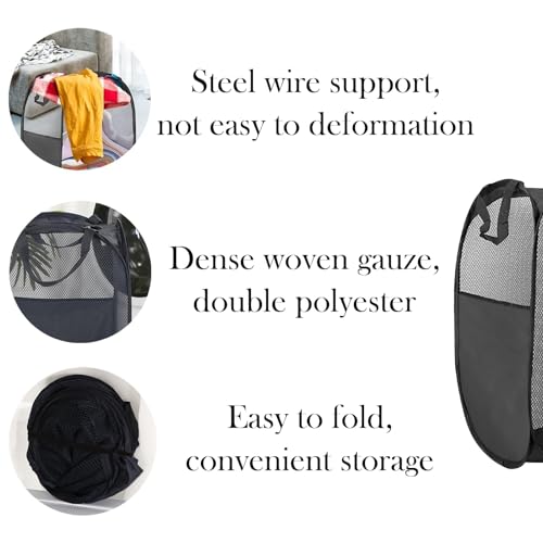 - High Quality Pop Up Laundry Basket: The black laundry basket is made of dacron breathable mesh and lined with galvanized steel wire, which is strong and durable. And pop up laundry basket is easy to store, and does not take up space after folding.