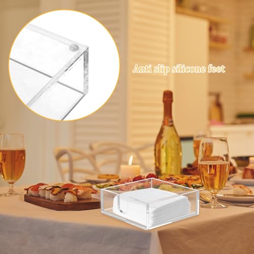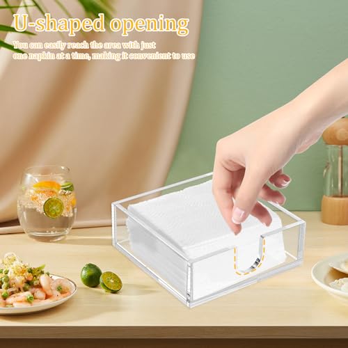 - [Decorative Function] Transparent and clear color can match any decoration, let this cocktail napkin holder provides simple and stylish storage space for your dining table, desk, buffet stage, and kitchen, bringing you more convenience, both decorative and practical.
