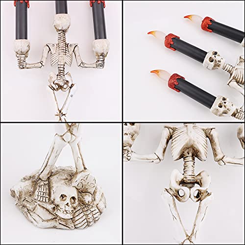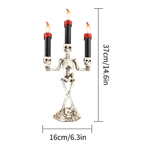 - 【Package Include】You will get 1 Halloween skull candlestick candle. The candle light is powered by batteries (batteries are not included). You need 3 AAA batteries to use. Install it at the bottom and turn on the switch to enjoy your Halloween night.