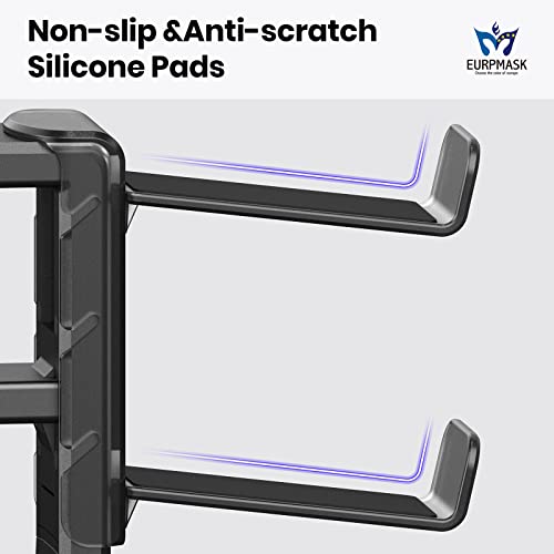 - 2 Controller & 1 Headset Holders – the gaming accessories boasts a 360-degree swivel hook and dual removable holders for two game controllers and a pair of headset. This headset and controller stand for desk supports devices up to 2.2 lbs (1 kg) and is compatible with wireless and wired headphones,PS5/PS4, Xbox One, Xbox 360, Xbox Series X, Switch Pro, Steam controllers, and various PC game pads.The sleek black design seamlessly blends with your gaming setup and workstation.