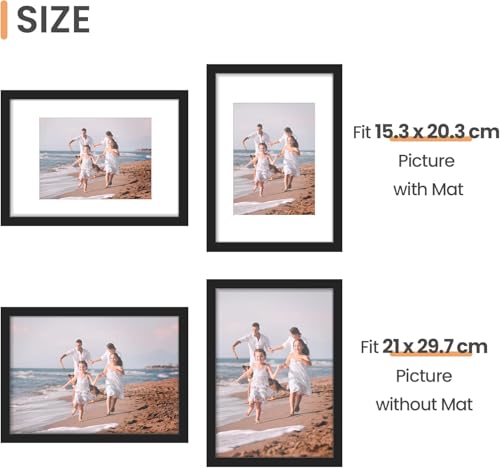 - 【Double Size Design】21×29.7cm/8.3"x11.7” picture frame perfects for Pictures 15.3×20.3cm/6"x8" with Mat or 21×29.7cm/8.3"x11.7” Without Mat. The display size will be 0.5inch smaller than the photo size to better stable the photo and prevent it from falling off.