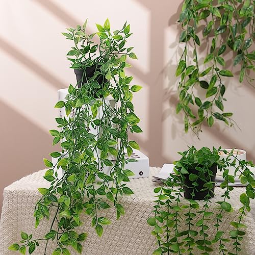 - Package includes: You will receive 3 packs of 3 styles of green fake plastic plants, which are mandala, snow pea, and eucalyptus, and the branches of each green hanging plant have different lengths. The styles are rich and well-proportioned, very suitable for decorating your balcony, wall, bedroom, living room, office, etc.