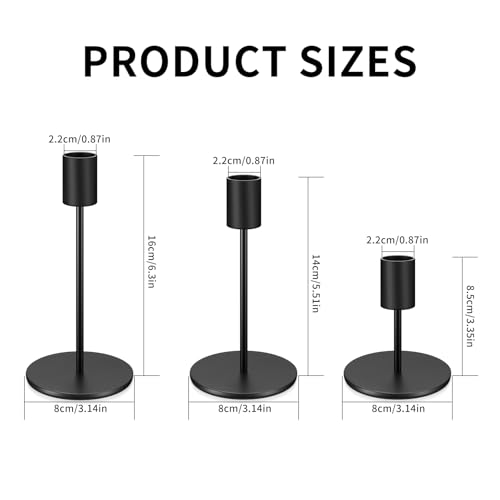 - Package Includes: a total of 3 black candle stick holders, the sizes are: 8x23cm/3.15×9 inch; 8x28cm/3.15×11 inch; 8x33cm/3.15×13 inch, can accommodate any standard size of tapered candles, making it a versatile addition to your home decoration