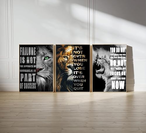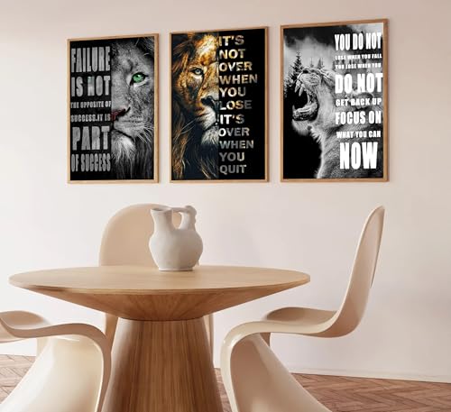 - Lion Motivational Wall Art: Introducing the majestic lion inspirational wall art a captivating masterpiece that effortlessly combines retro charm with modern flair. this 3 piece canvas set features striking black and white animal paintings of lions, exuding a timeless allure that is sure to elevate the ambiance of any space