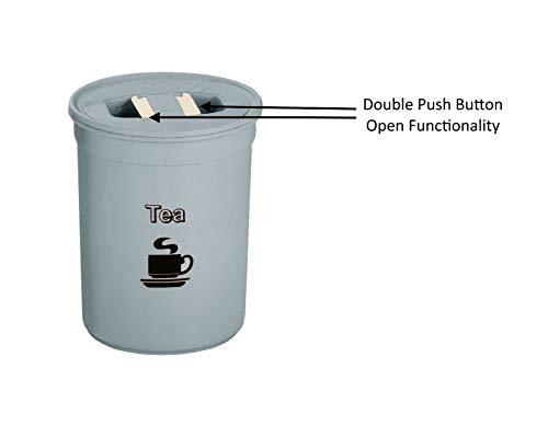 - SECURE THE LOOSE INGREDIENTS Remove any opened packets and keep your essential tea, coffee and sugar safe with this airtight 3 piece container set. This container set holds up to 850ml of loose tea, tea bags, coffee and sugar without coming into contact through the airtight lids. The containers only need to be opened when both buttons on the lid are pressed.