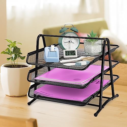 - [Storage Function] The desk organiser tray adopts modern mesh structure design. The space is very large and can accommodate all documents. The 3 tier letter tray is sufficient Use your vertical space