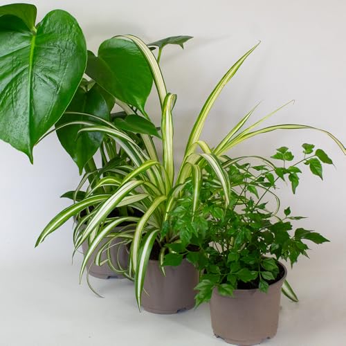 - DIVERSE TRIO: Includes Monstera Deliciosa, Spider Plant, and China Doll Plant, each in 10.5cm pots.